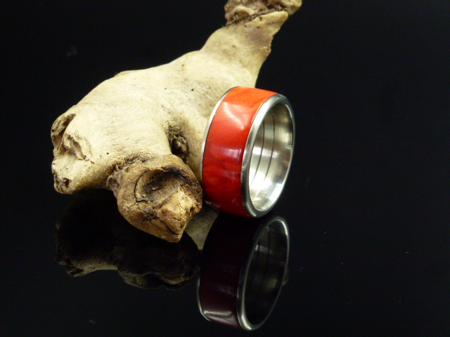 Dieser handgedrechselte Ring ist aus Edelstahl mit Juma "Magma Dragon"