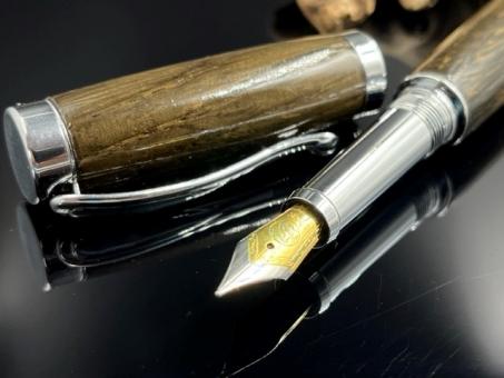 Dieser handgefertigte Füllfederhalter wurde mit "Mooreiche" veredelt.