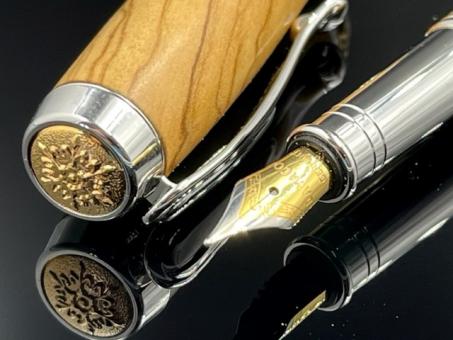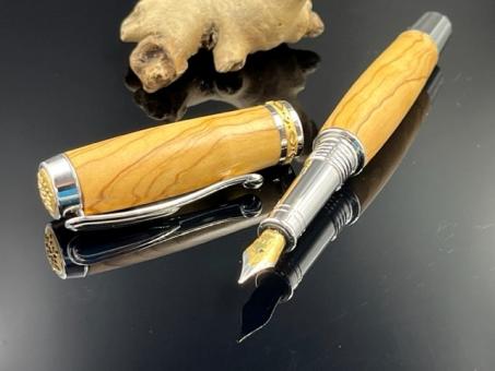 Dieser handgefertigte Füllfederhalter wurde mit "Olivenholz" veredelt.