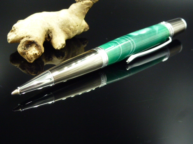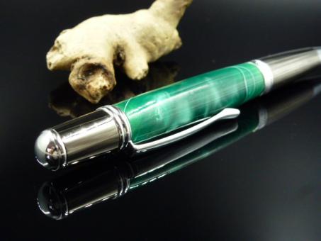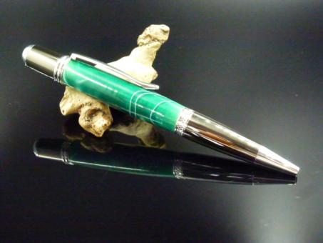 Mit diesem handgefertigten Drehkugelschreiber vereinen Sie Eleganz und Handlichkeit. Das Silber harmoniert ideal mit dem "Acryl" und hinterlässt einen aufeinander abgestimmten Gesamteindruck.