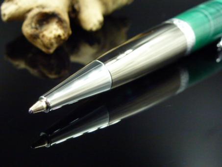 Der Kugelschreiber ist mit einer handelsüblichen Großraummine ausgestattet.